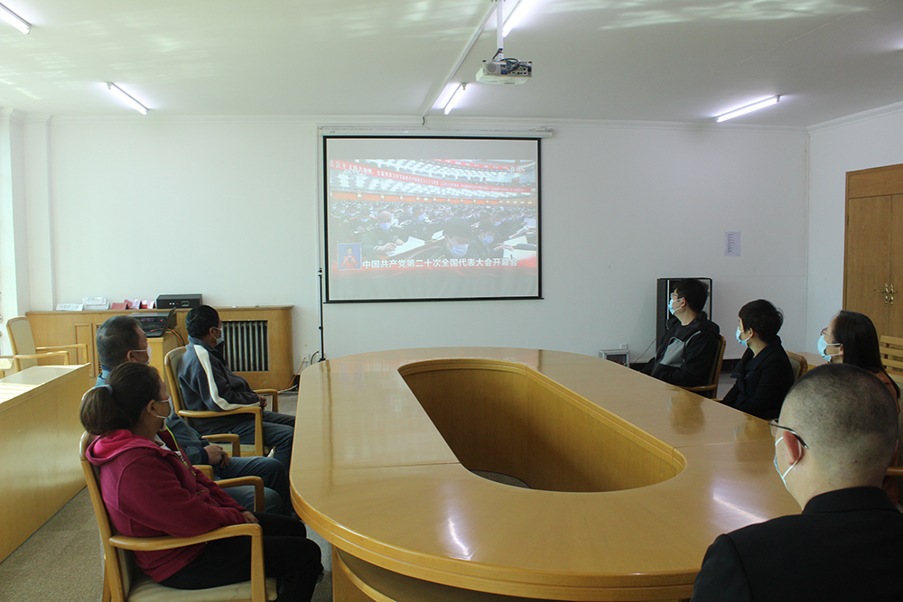 大龙控股所属大龙物资党支部组织党员干部观看二十大开幕式